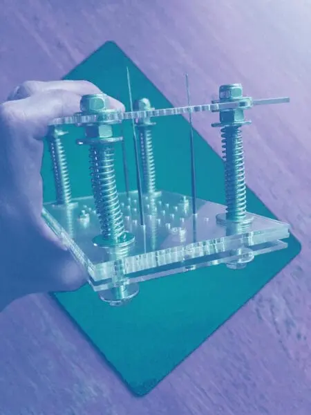 • fabrication d’une mini-aiguilleteuse manuelle, sur un support en plexiglas découpé au laser